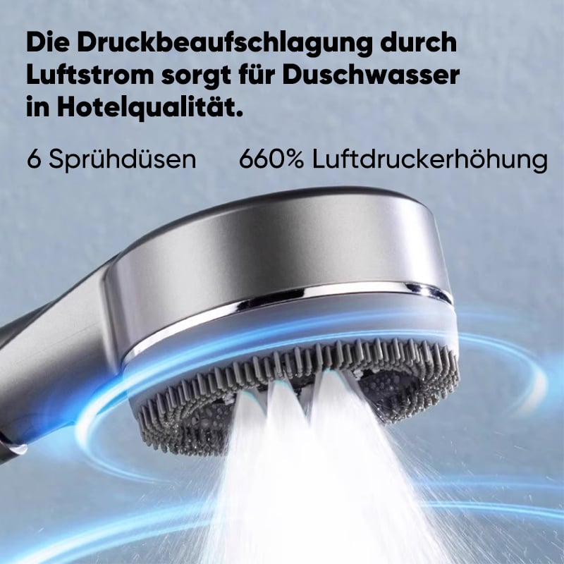 Druck: Ausgestattet mit einem Turbo-Airflow-Booster-System für ein belebendes Duschgefühl ("Hotel-Duscherlebnis").