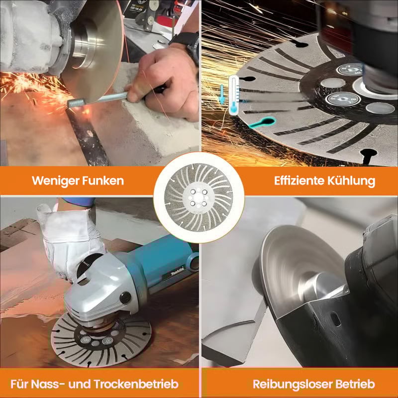 Die optimierte Schlitzgeometrie gewährleistet eine kontinuierliche Schmutzabfuhr und Luftzirkulation, wodurch die Reibungswärme reduziert und die Schneidleistung auch bei längerem Einsatz aufrechterhalten wird.